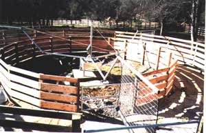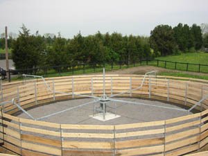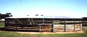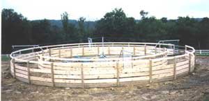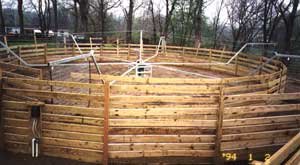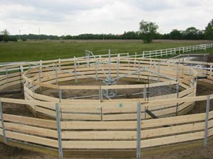 This 4 horse model was customized to 49' diameter to fit under existing structure. DRESSAGE STABLE / Stephen Peters | |