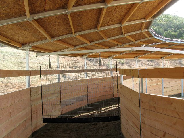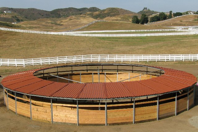 EuroXciser Track Covers are pre-engineered half roof structures made of galvanized structural steel (15 yr warranty) and galvanized or powder coated metal roof panels offering up to 45 year warranty.