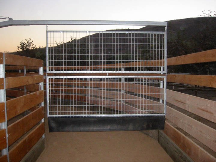 They are made of two galvanized frames articulated together for added flexibility. Two 3/16th welded galvanized wire panels are fixed into frames. They are removable and can easily been replaced, keeping the same frames. A large rubber guard is fixed on bottom frame. Connected to fencer/teflon mounts.