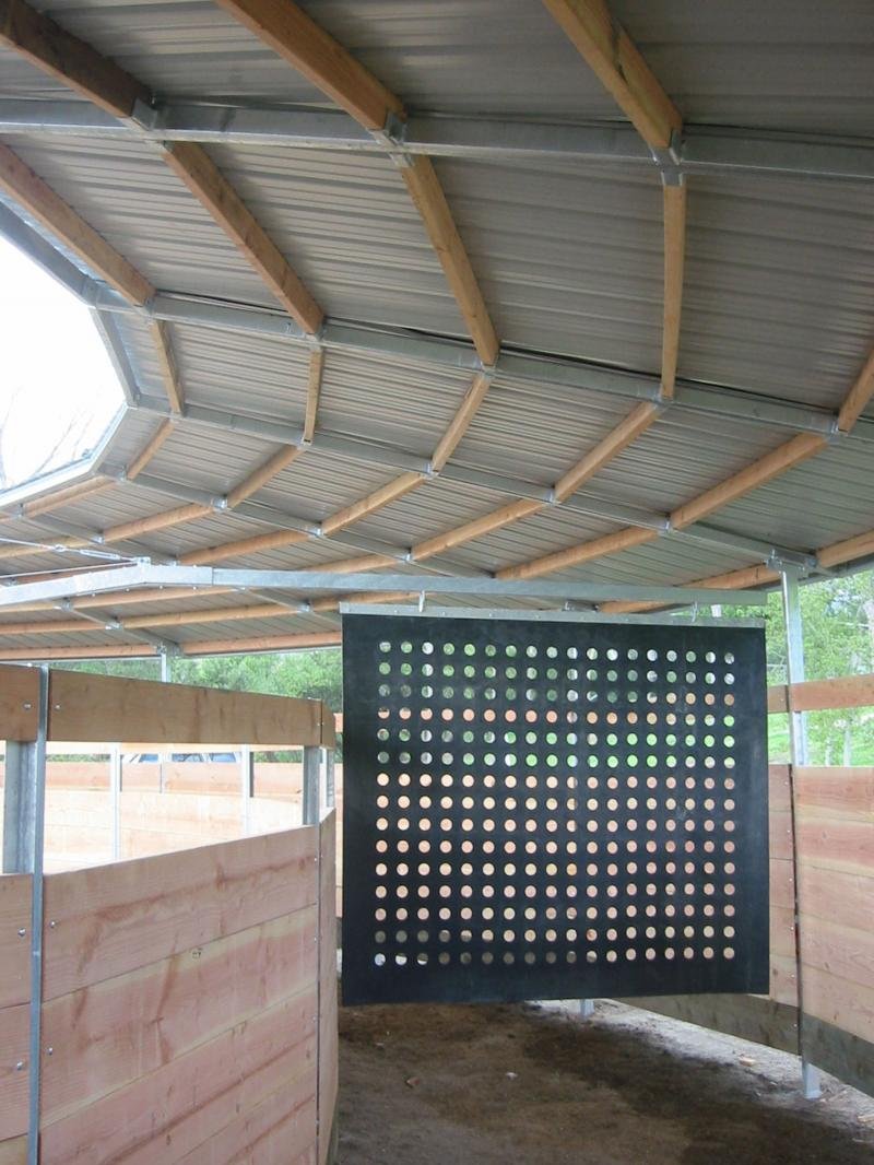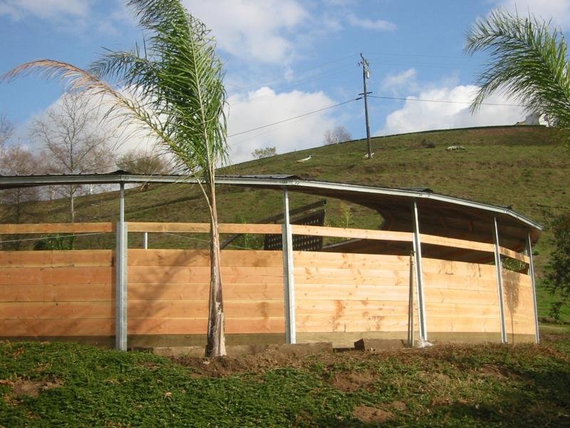 EuroXciser Track Covers are pre-engineered half roof structures made of galvanized structural steel (15 yr warranty) and galvanized or powder coated metal roof panels offering up to 45 year warranty.